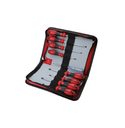 F99-901 9 Parça C-PLUS Tornavida Takımı (Deri çantalı) - Düz/Yıldız/Pozidriv + Kontrol Kalemi